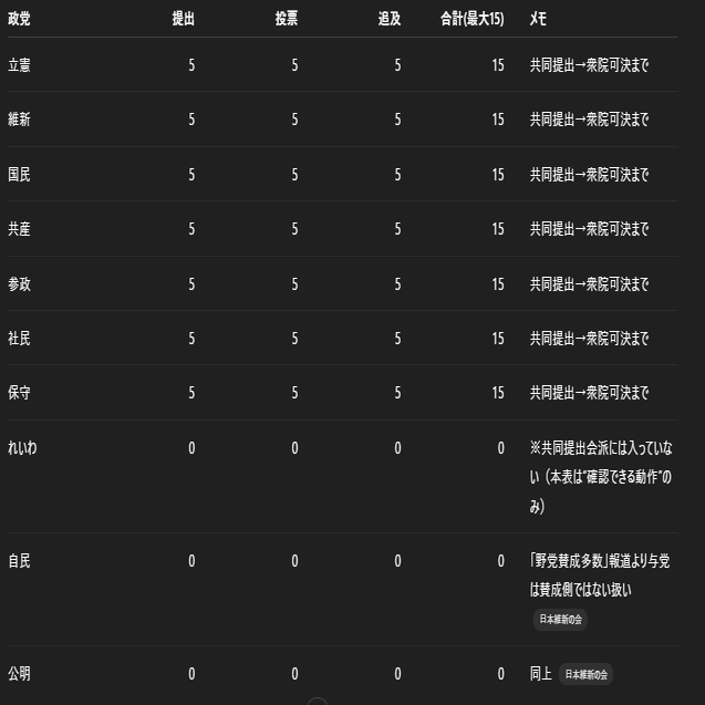 立憲:可決ラインの“部品”(調整・束ね・共同提出に乗る力)